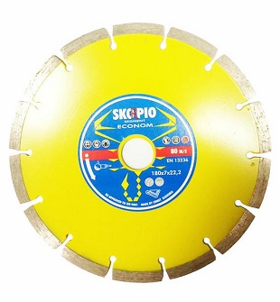 Kotouč se sintrovanými segmenty. Použití pro řezání stavebních materiálů - cihly, kámen, beton, tašky. Profesionální kvalita. K dostání v průměrech 115, 125, 150, 180 a 230mm.
